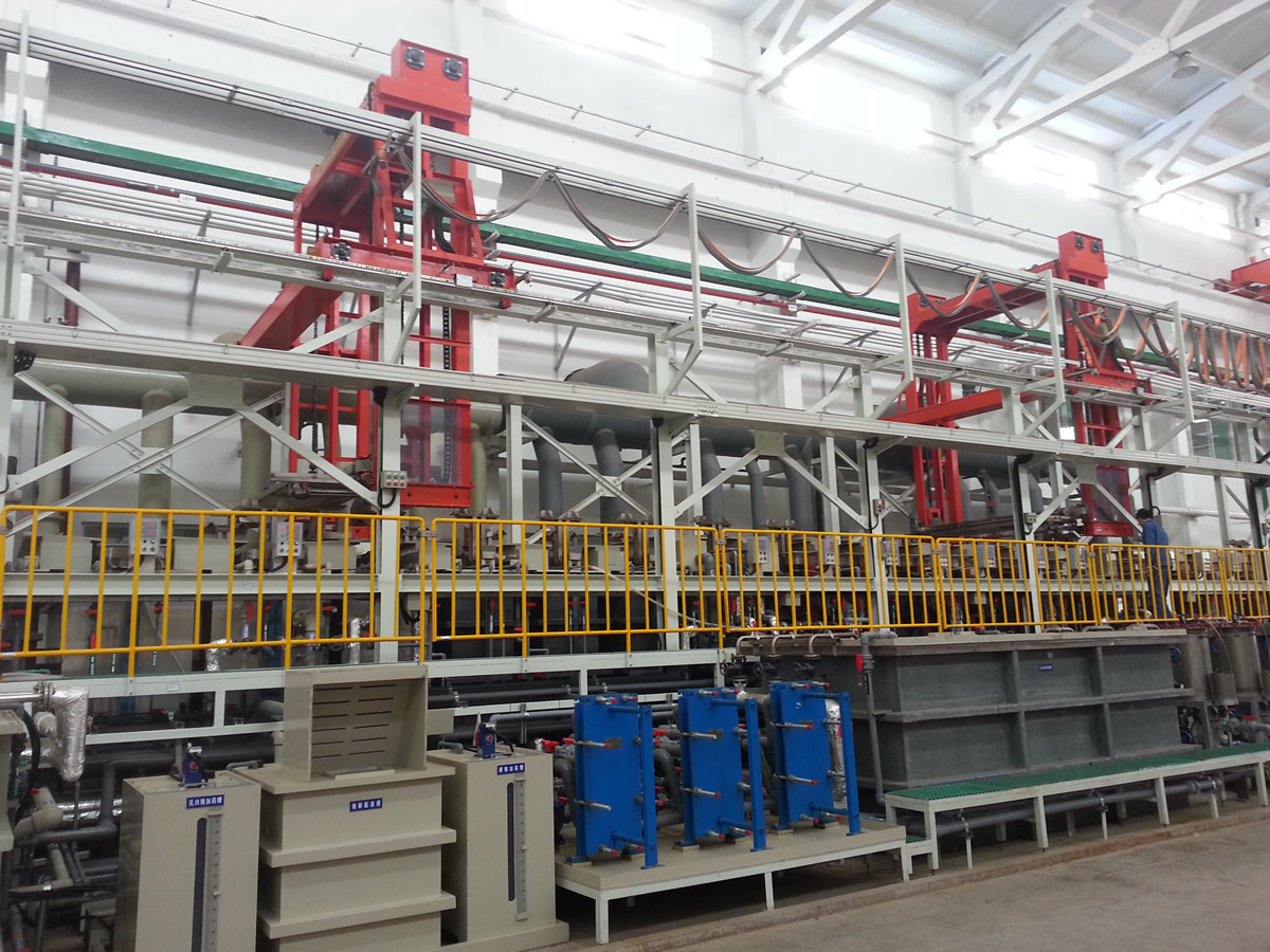 鍍液循環管理電解再生系統,高效節能的陰陽極排布,電流效率高。上下料輔助機構,廢水、廢氣在線回收系統,污染物零排放。