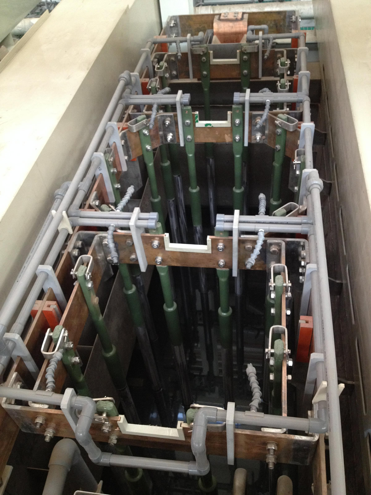 高效節能的陰陽極排布,電流效率高,上下料輔助機構。廢水、廢氣在線回收系統,污染物零排放。