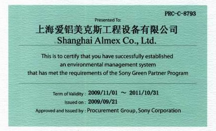 2009年9月份,我公司再次順利通過索尼公司的綠色合作伙伴的審核。